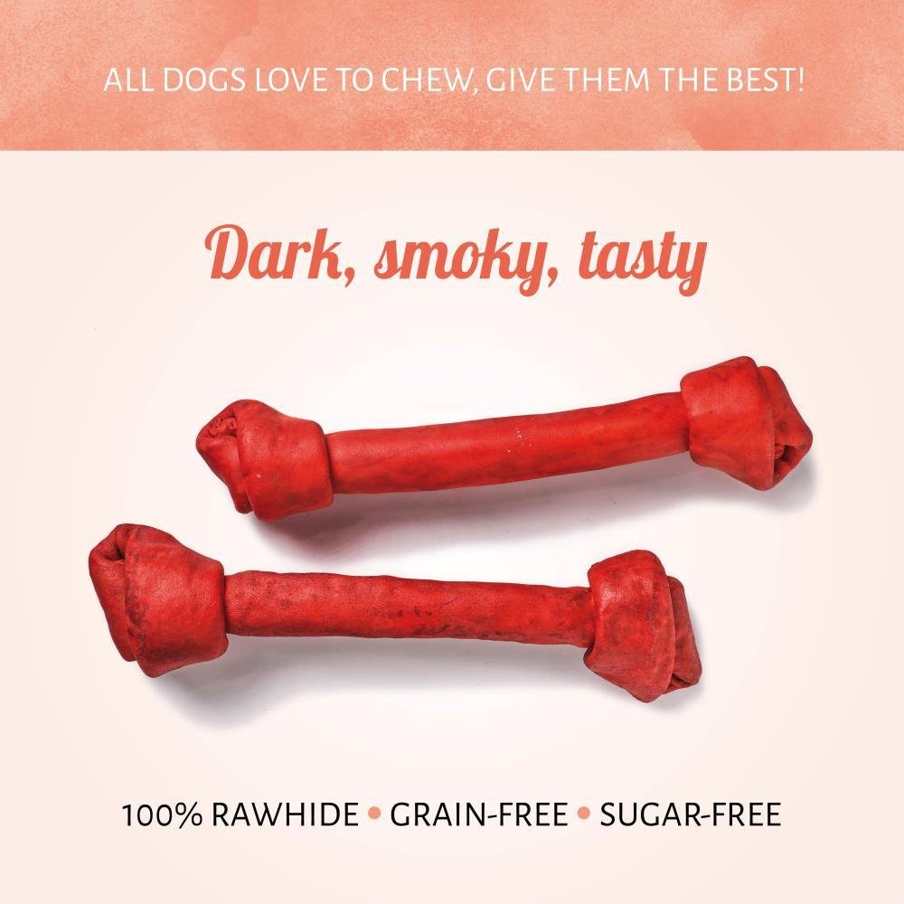Extreme chewers will succumb to the influence of our Heavy Prime Bone Red dog chews. These rawhide bones have a tasty, natural meat flavour and will give a long lasting challenge for your dog. They are dark... but the darker the chew, the smokier the taste!