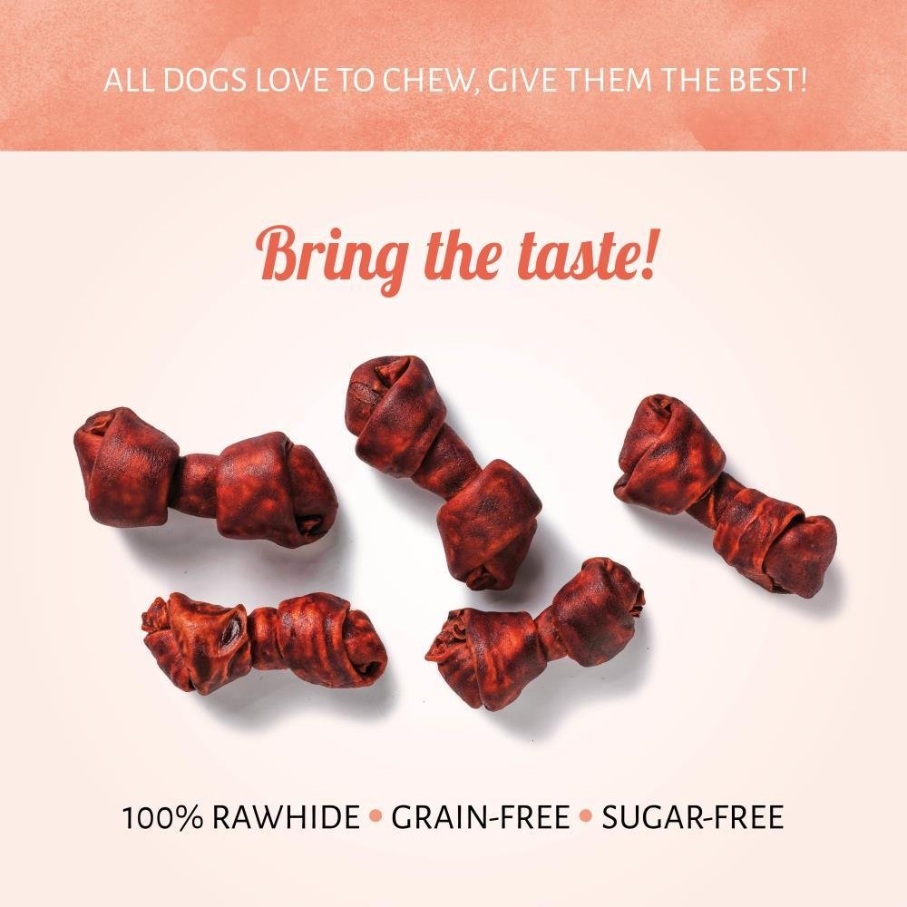 Praise your dog with Heavy Prime Bone Red dog chews. These all-natural rawhide bones are finely crafted. Healthy and delicious, the braided ends create a durable chew that won’t bore your dog. Bring on the taste!