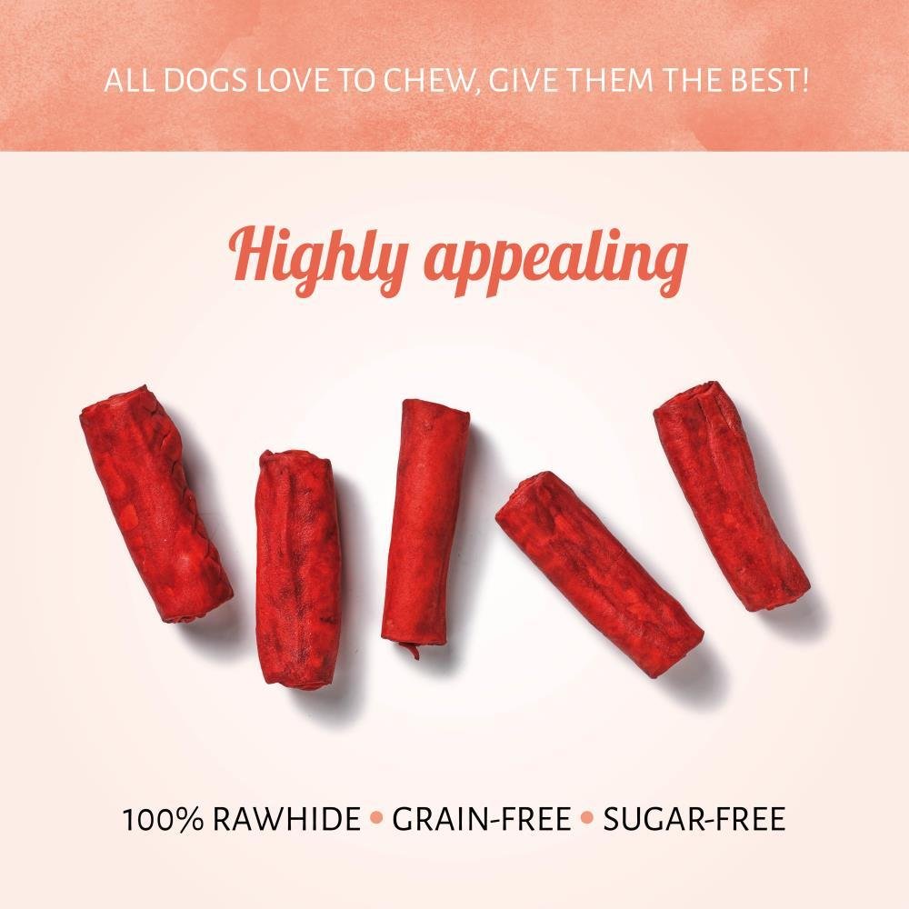 Roll Red dog chews are high in protein, low in fat and have a flavour that is highly appealing to your dog. The rawhide chews deliver a satisfying and challenging chewing experience for your four-legged family member.