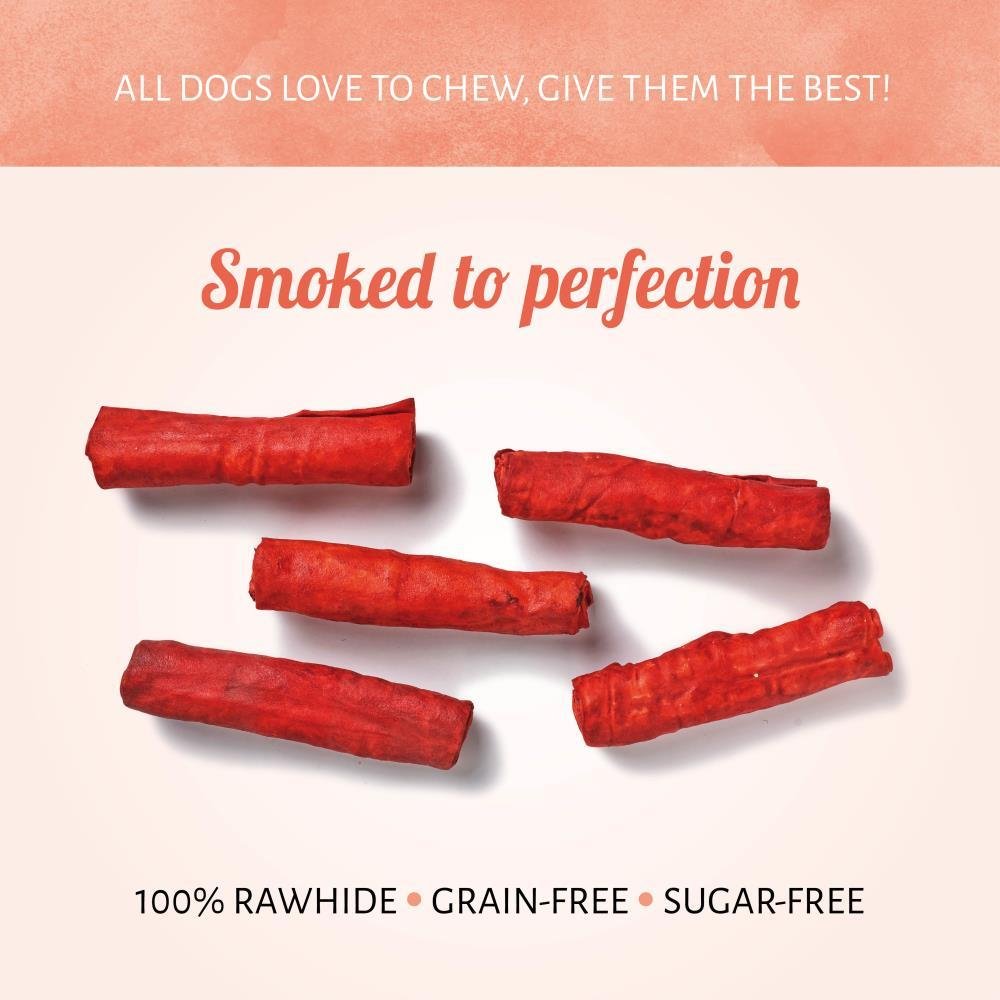 Encourage health teeth and gums with every chew on Roll Red dog chews. This tasty reward is crafted of just rawhide. Your furry friend will be busy savouring all the BBQ flavour.