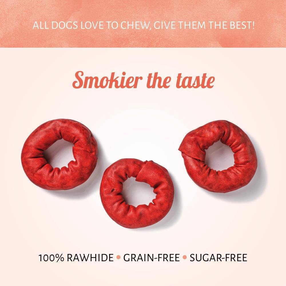 Ring Red dog chews will make snack time extra exciting. Made with a single simple ingredient the chews are naturally smoked and designed to keep your dog engaged. Watch your dog go crazy for these dark tasty chews.