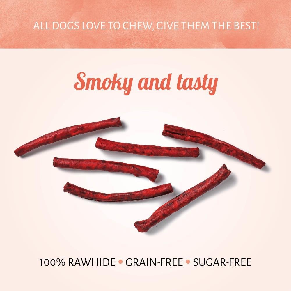 Mini Roll Red dog chews are created so that you can reward your small dog or puppy with a special dog chew. Made with just rawhide, what dog wouldn’t be focused on the tasty prize - a real meat chew with smoked flavour.
