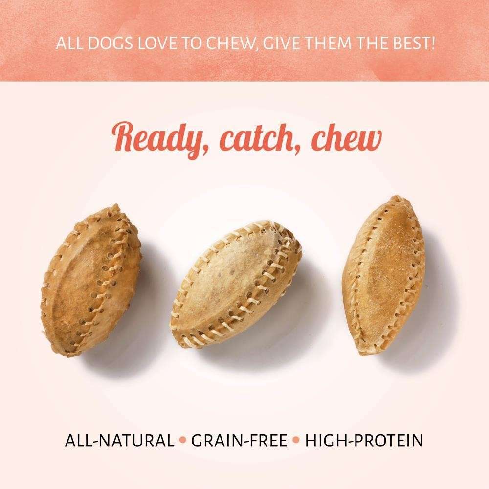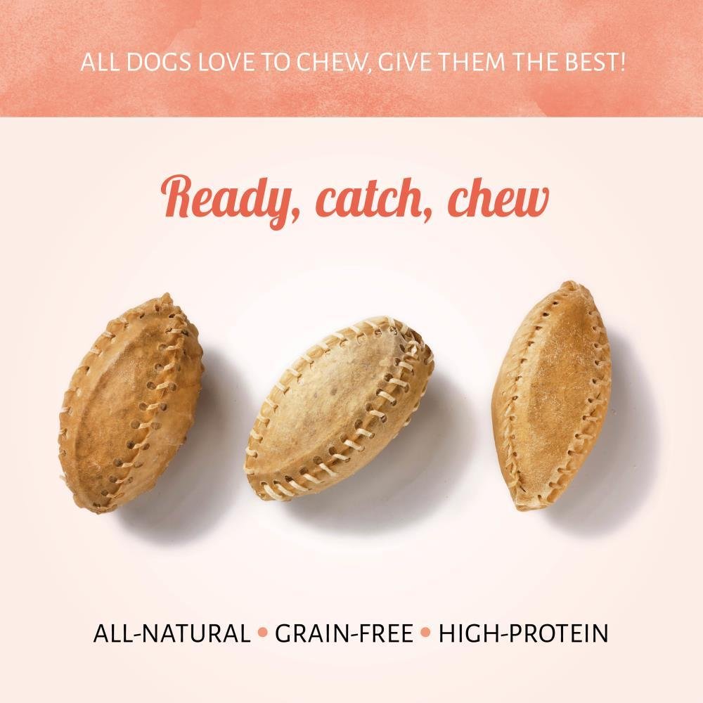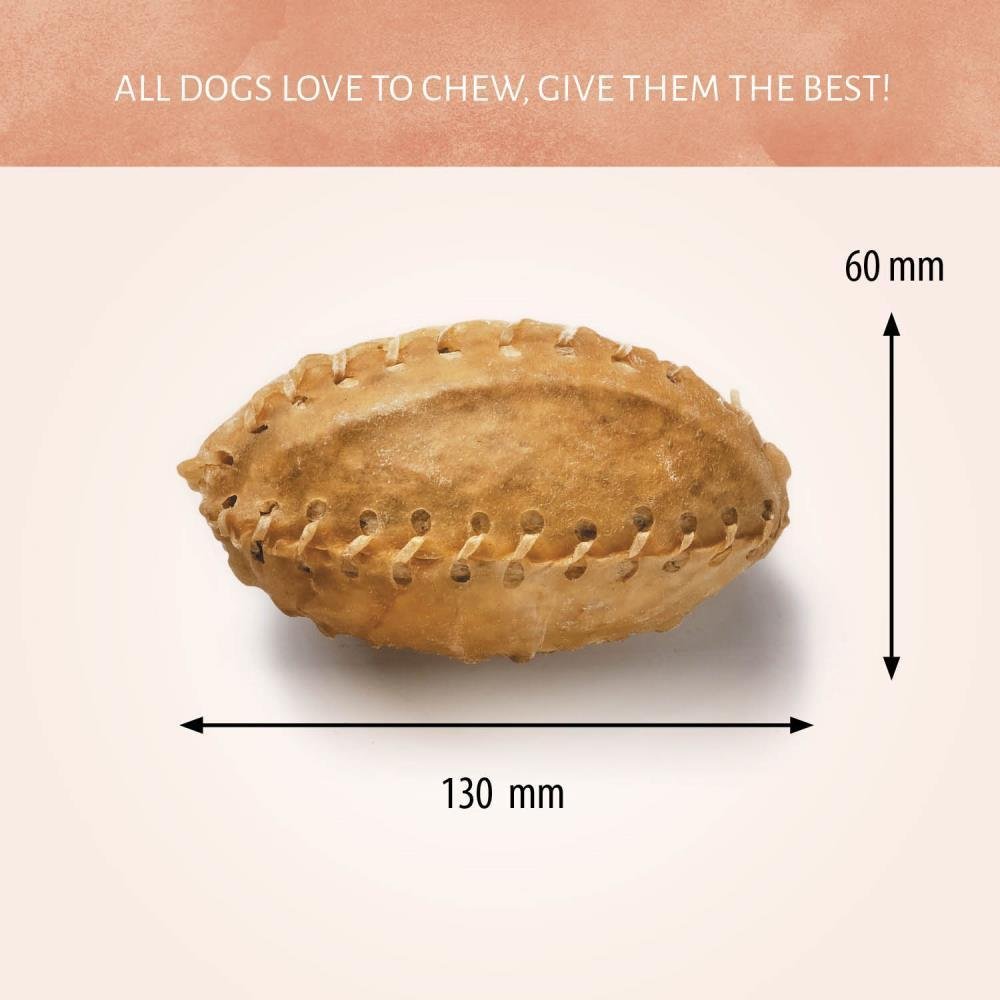 Ready, set, catch! Treat your dog to some flavourful chews with our Americal Football. Made of all-natural rawhide this football shape has the look and feel. Your dog will love running for this hard and strong dog chew.