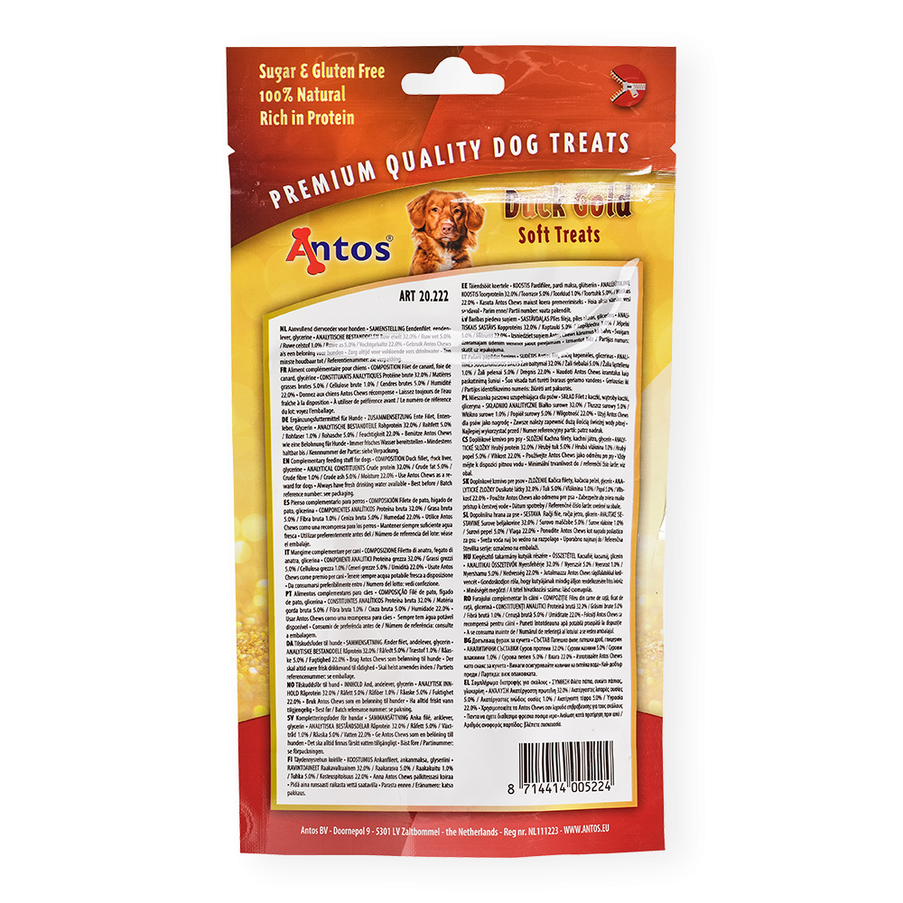 Antos Duck Gold are delicious, natural dog treats with real duck to help maintain lean muscle. These natural and grain-free treats are the perfect complement to dry and canned dog foods.