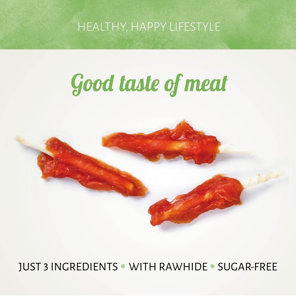 Show your dog who’s a good boy with our Antos Flags Gold. These jerky dog treats are made with chicken breast hand-wrapped around a rawhide stick. Especially great for canines who love the best of both worlds.
