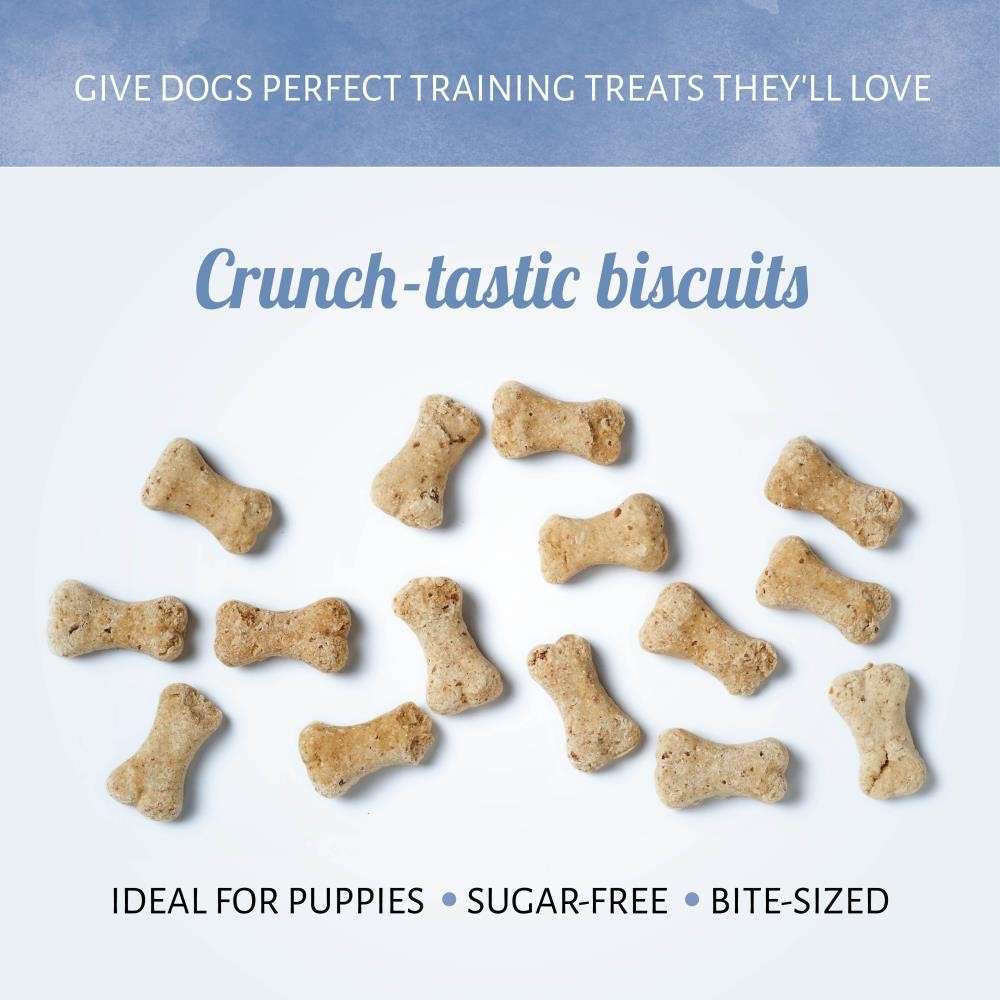 Our Antos Trainer are irresistibly crunch-tastic biscuits that help your dog clean her teeth and freshen breath. The delicious, small-bite biscuits are perfectly sized for small breed dogs and ideal as training rewards.