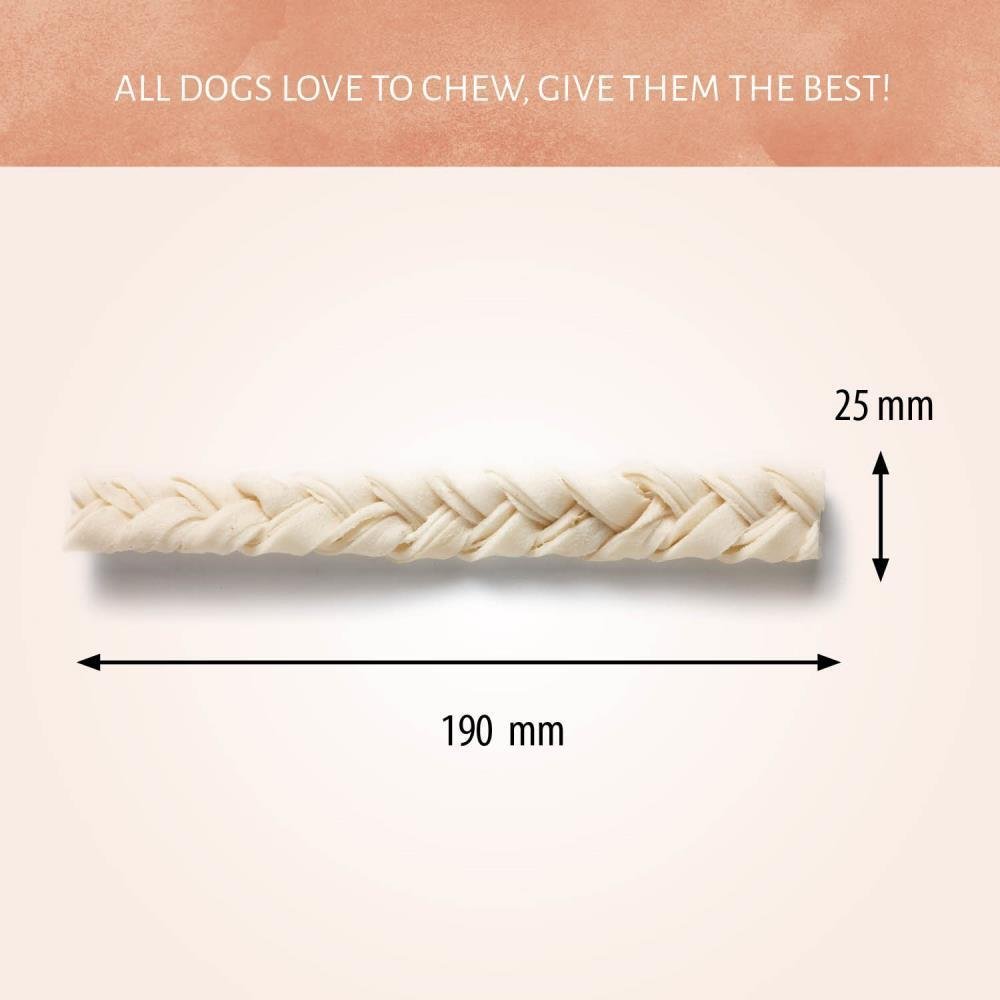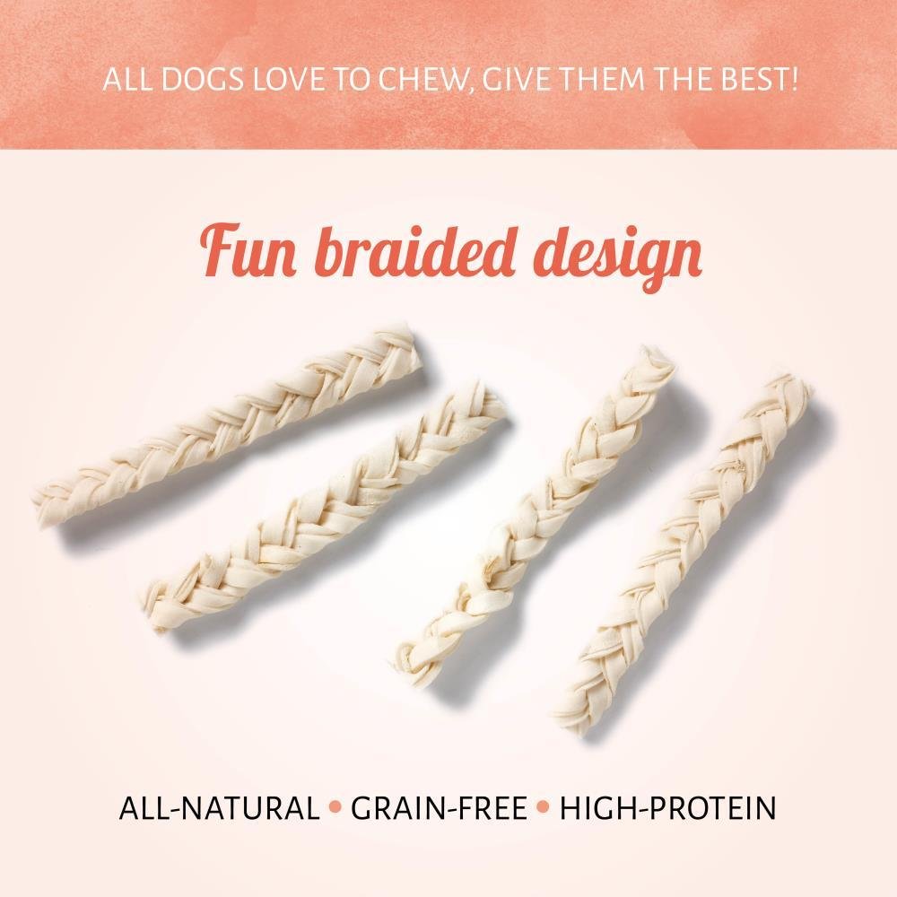 Add more fun to the classic rawhide chew! Your pooch will love Braided Skin which is braided into a twist for an anytime chewtastic treat. The high protein chews will give your best friend a quality chewing experience.
