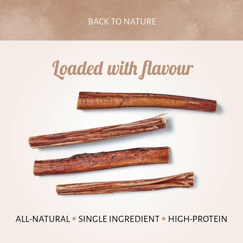 These Bull Pizzle dog snacks are sure to be a hit in your home. Loaded with flavour from real beef, your dog can't resist the delectable meaty flavour of these tasty snacks. The natural choice for every dog.