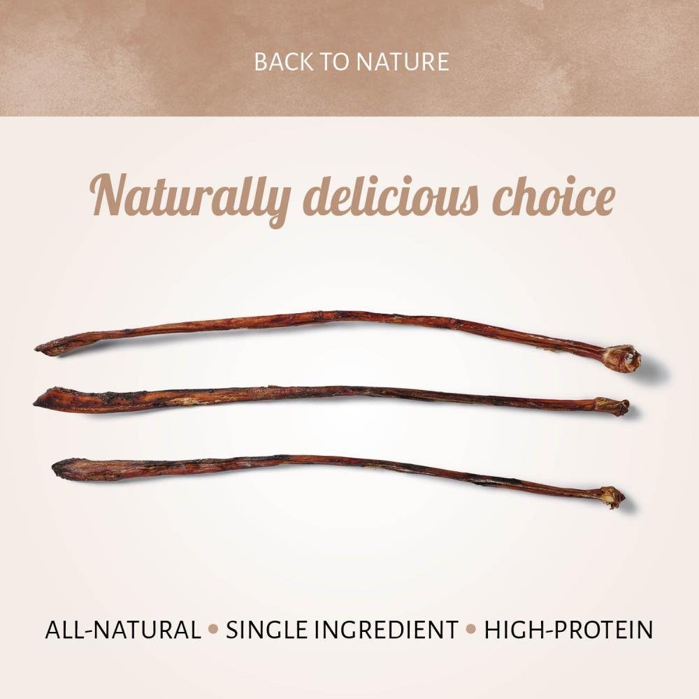 Chewing on Bull Pizzle dog snacks is good for the health and happiness of your beloved dog. Using only the purest ingredients, made with just a single ingredient is a naturally delicious choice.