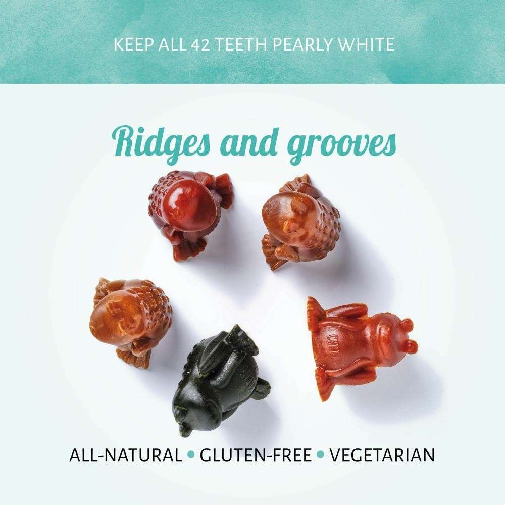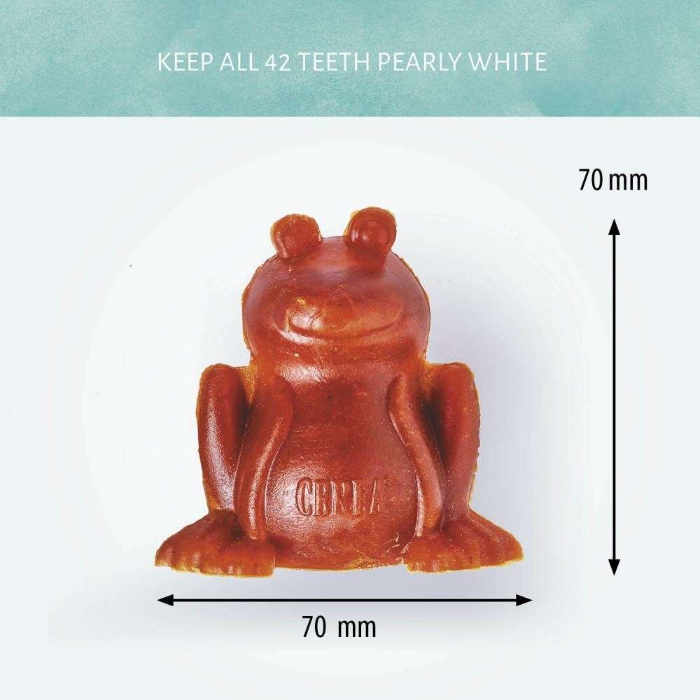 Introduce a new love of brushing. Our Cerea Frog is made with ridges and grooves that can help reduce plaque, tartar and bad breath. The gluten-free and vegetarian treats keeps the doggie dentist away!