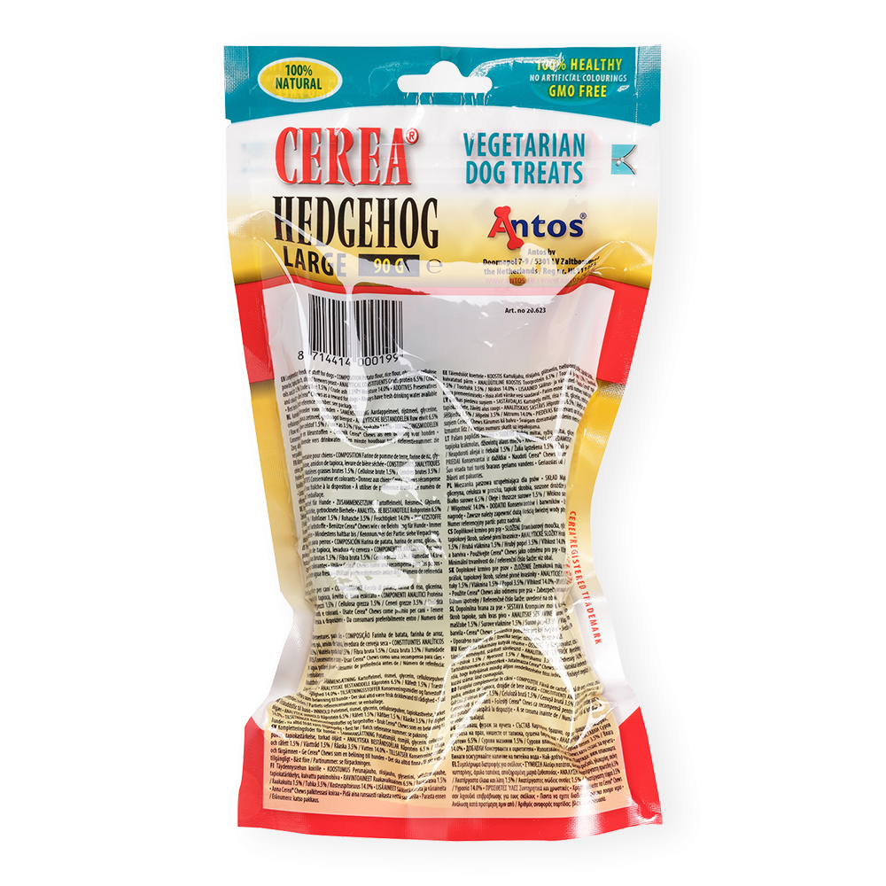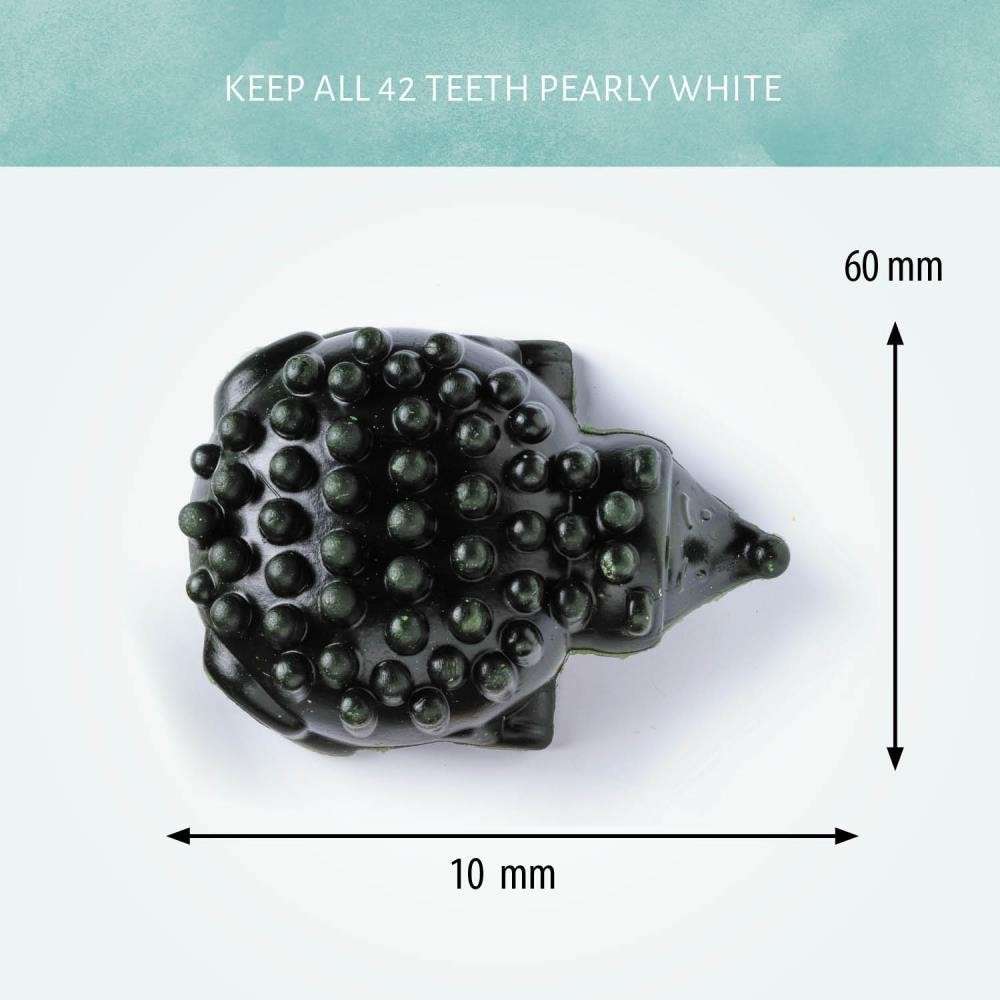 Meet our Cerea Hedgehog. The unique shape ensure proper blood flow through the gums, and also prevent bad breath and the build up of plaque and tartar. Completely edible and made with natural ingredients.