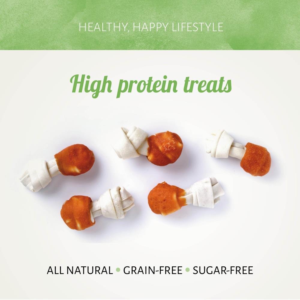 Chicken D'light Knots treats dogs to a delicious combination of chicken and rawhide in one tasty chew. These all-natural treats are made with the finest chicken wrapped around a rawhide knotted bone.