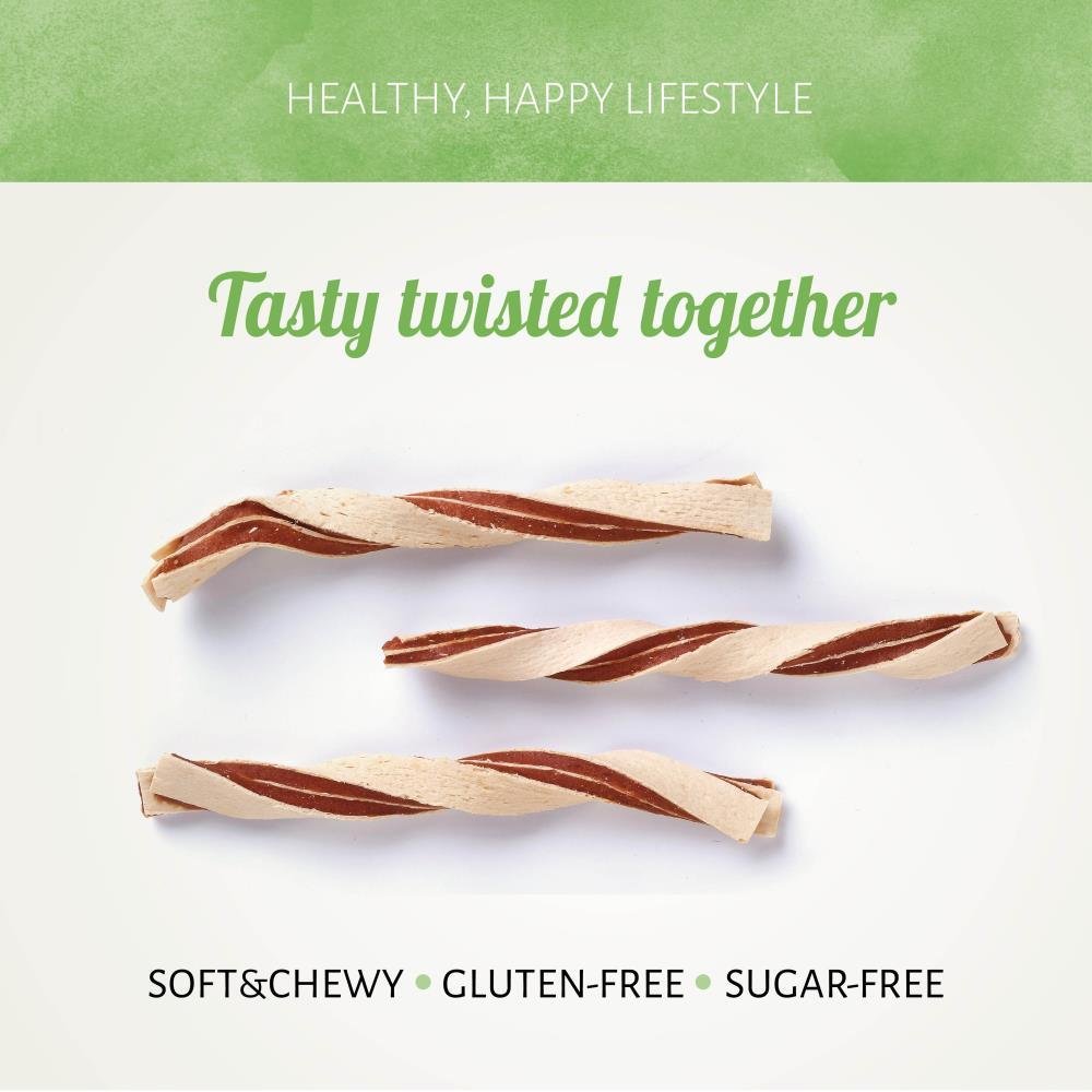 Our Chicken&Fish Twists are made from chicken and pollack strips in a twisted shape. Naturally low in fat with a delicious flavour that your dog will love. These treats will help maintain a healthy skin and coat.