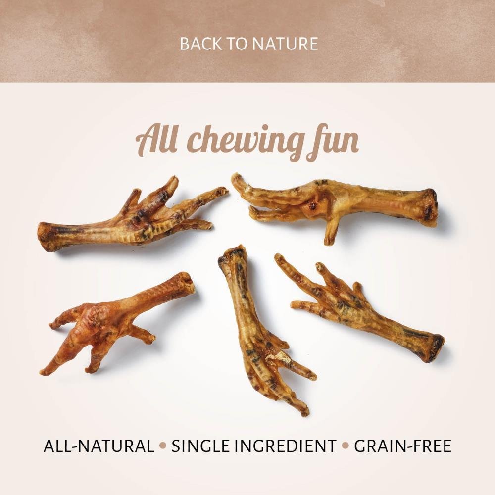 Our Chicken Feet are crispy, all-natural dog snacks offering both large and small dogs plenty of healthy chewing fun. Because only the best will do for your best friend, reward him with a treat that satisfies and nourishes in every bite.