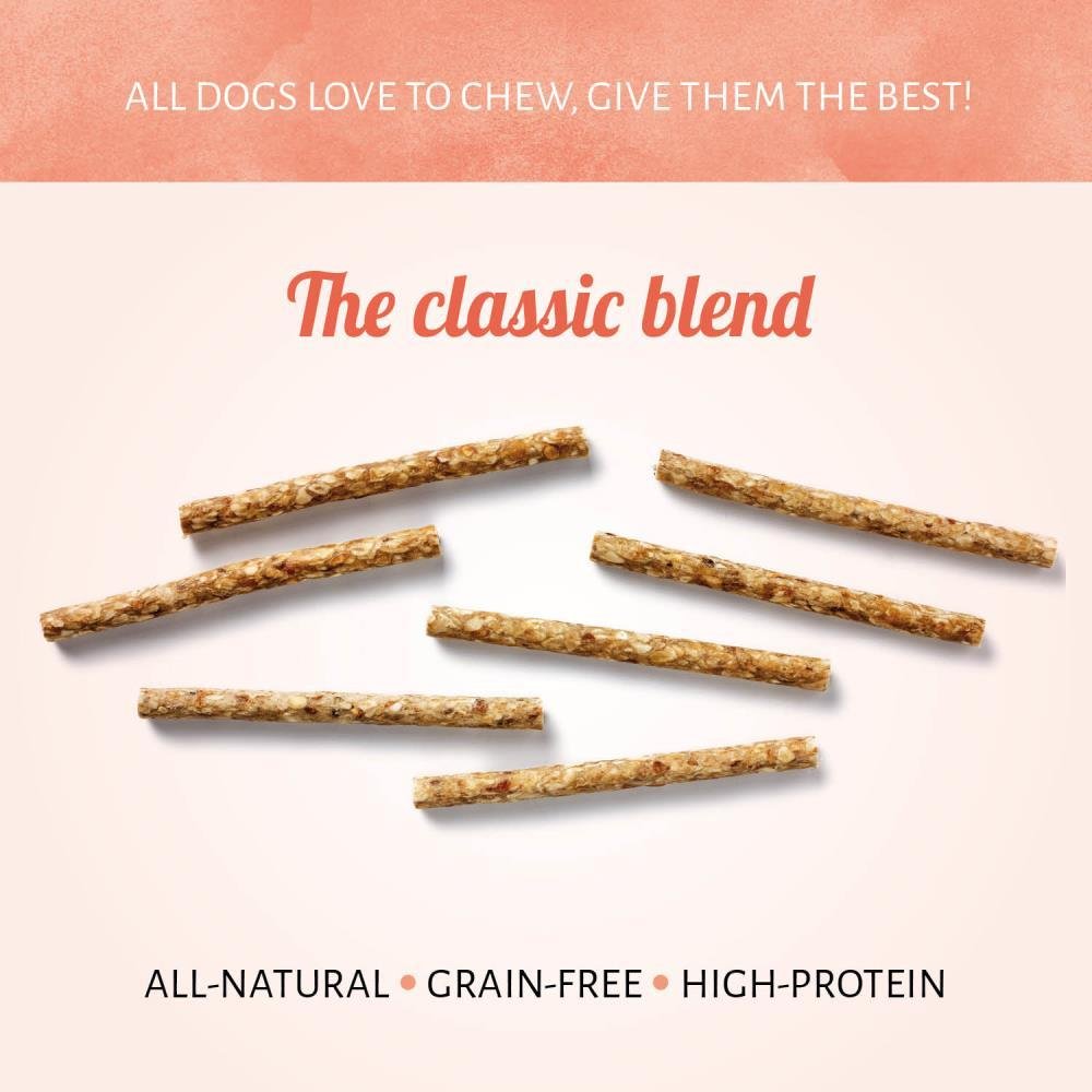 Treat your furry friend to simple chewing pleasure with Crunchy Munchy Sticks Natural. This classic blend of premium rawhide with rice flour will keep your dog’s taste buds happy. Your dog will eat them right up for sure.
