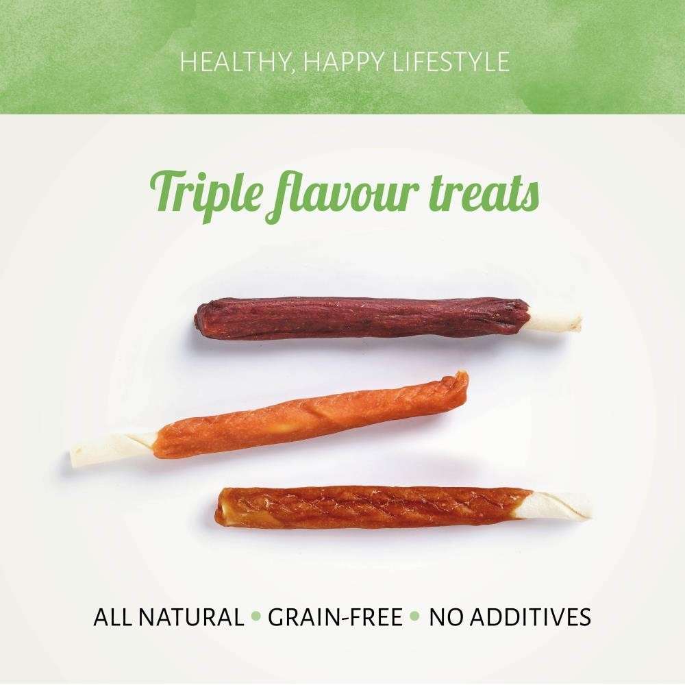 Give your dog long-lasting entertainment with Finest Poultry Bâtonnets. These treats are made with premium rawhide wrapped with delicious chicken breast, savoury duck and chicken liver. Triple-flavour in one bite.