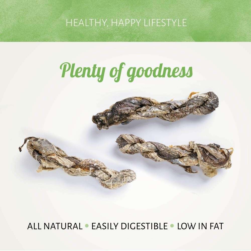 Our Fish D'light Twists are made from 100% fish skins in a twisted shape. Naturally low in calories with a delicious flavour that your dog will love. The rough texture will help remove tartar from your dog’s teeth.