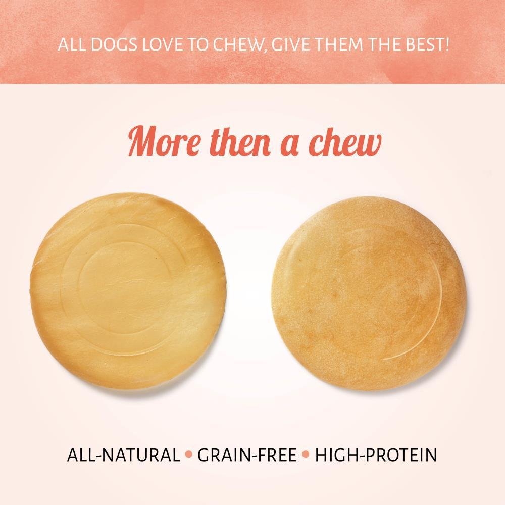 Simply switch to a new shape of chewing for a happy, satisfied dog. Our Frisbee dog chews are designed for dogs that love to chew. Whether it's an intense game of just for staying at home our frisbee chews have it covered.