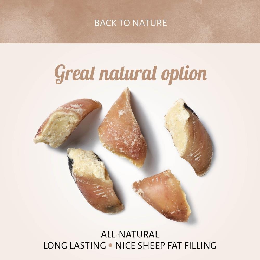 Your dog will love the smell and taste of Hooves Sheep Fat. These natural cow hooves are cleaned, trimmed and stuffed with a tasty sheep fat filling. Safe, natural and delicious snack full om amazing flavour.