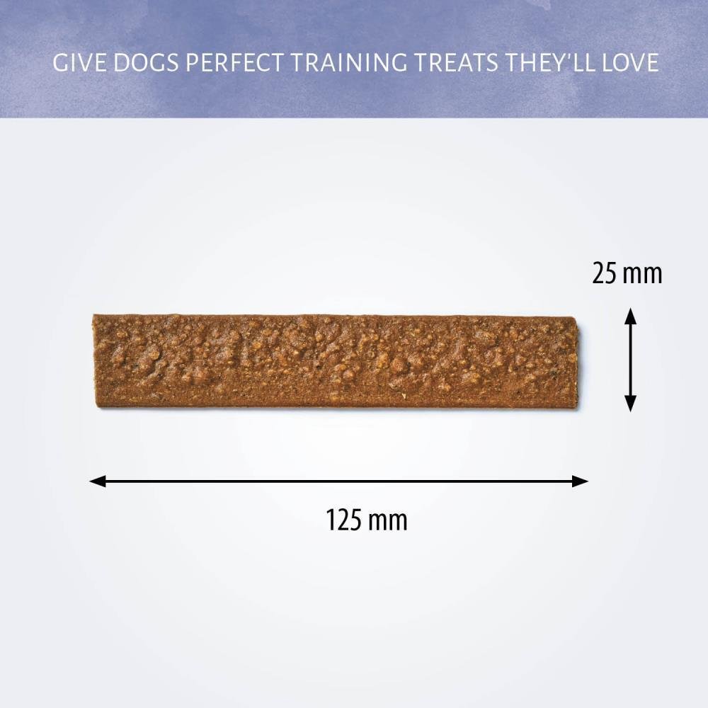 Recommended as a snack for dogs. Treat responsibly: choose snacks as recommended based on the size of your dog. Dogs < 5 kg (XS): 1 pieces per day. 6-10 kg (S): 1,5 pieces per day. 11-25 kg (M): 3,5 pieces per day. 26-35 kg (L): 4,5 pieces per day. Break into small pieces for small dogs. For the safety of your pets, supervise your dog when giving any chew or treat. Keep fresh water available at all times. Store in a cool, clean and dry place. This product is a treat and is not intended to be fed as a meal.
