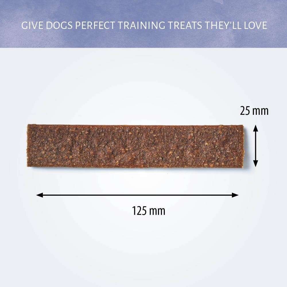 Recommended as a snack for dogs. Treat responsibly: choose snacks as recommended based on the size of your dog. Dogs < 5 kg (XS): 1 pieces per day. 6-10 kg (S): 1,5 pieces per day. 11-25 kg (M): 3,5 pieces per day. 26-35 kg (L): 4,5 pieces per day. Break into small pieces for small dogs. For the safety of your pets, supervise your dog when giving any chew or treat. Keep fresh water available at all times. Store in a cool, clean and dry place. This product is a treat and is not intended to be fed as a meal.