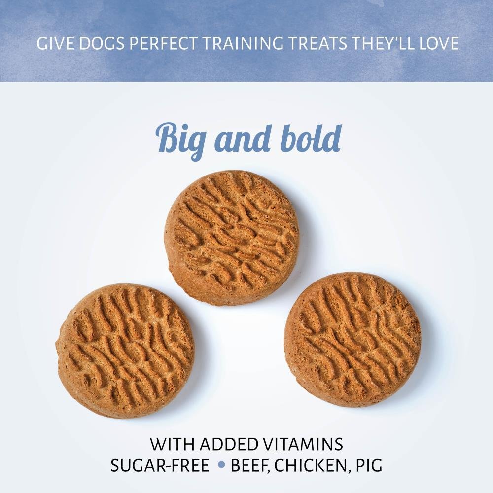 Our Jumbo Biscuits are the perfect crunchy treat for your meat-loving dog. Your dog will love the satisfying, tooth-cleaing crunch of these sugar-free biscuits. The big biscuits will be loved anywhere!