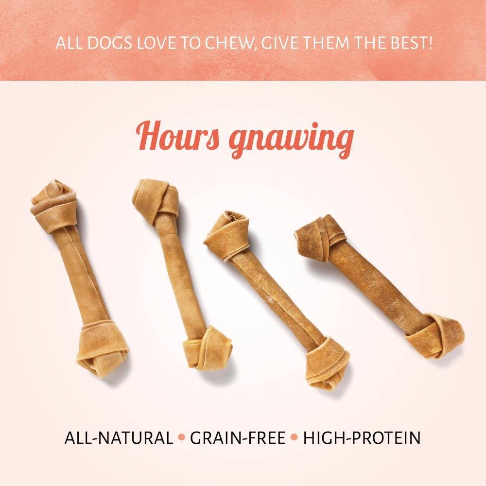 Your dog will spend hours gnawing at our yummy Knotted Bone dog chews. These all-natural rawhide chews will privde a natural, savoury flavour that your furry friend will love. So let's keep your dog off your shoes and furniture!