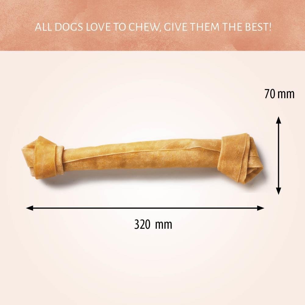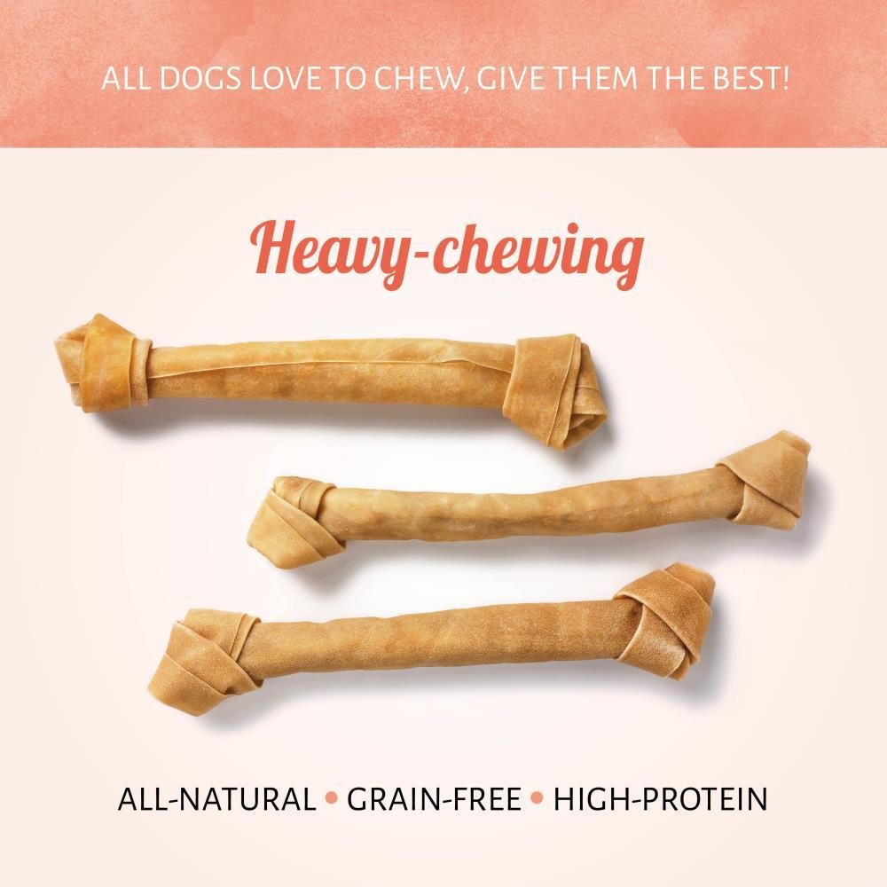 Your heavy-chewing friend will love chewing on Knotted Bone dog chews. The chews promote tartar control and healthy teeth and gums. Made with all-natural rawhide the chews are especially paw-some for large dogs.