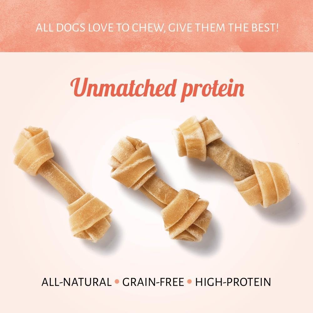 Treat your furbaby with the easy nourishment of Knotted Bone dog chews. Giving him these all-natural chews provide protein in every bite. These chews will keep your dog coming back for more.