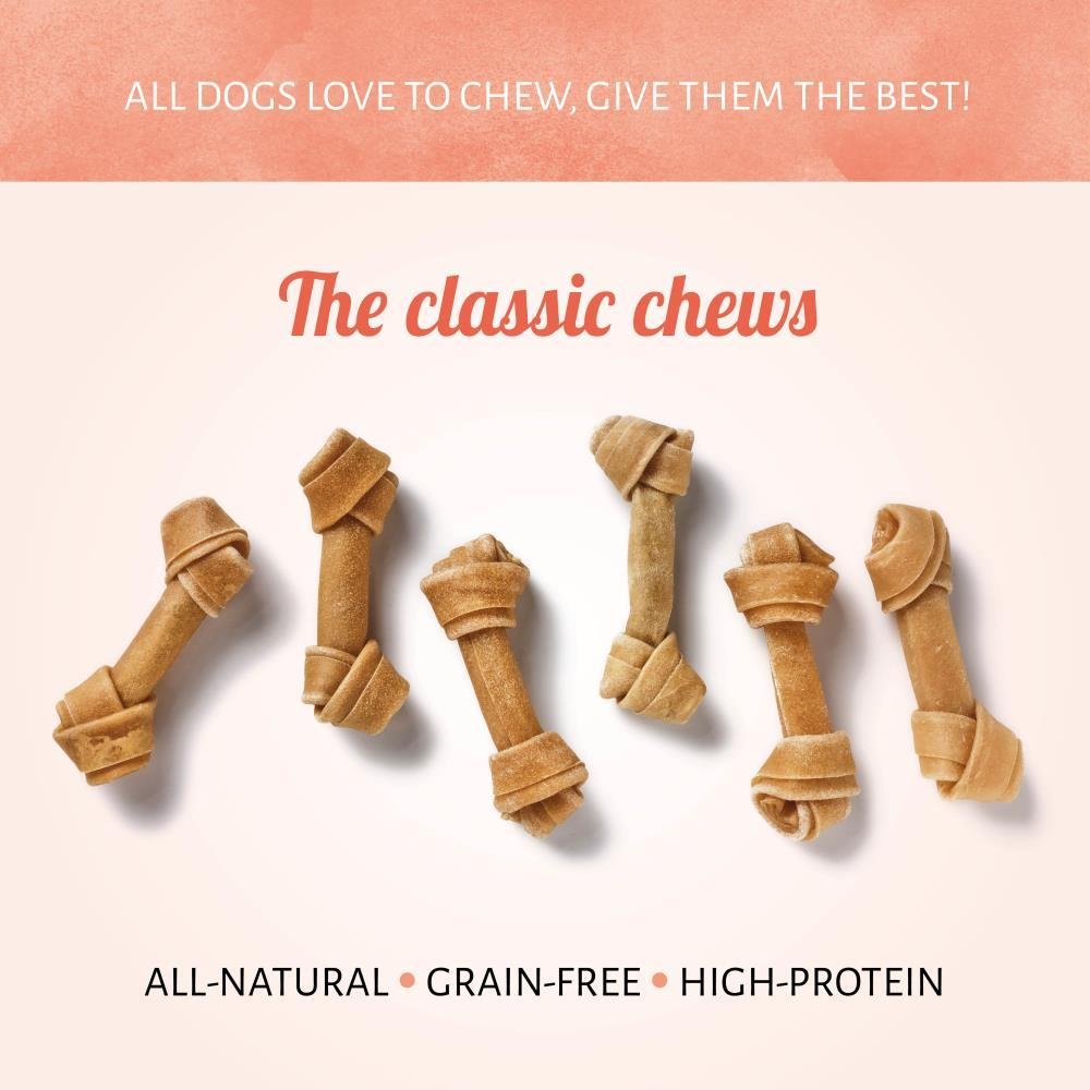 You can feel good about giving your dog all-natural Knotted Bone dog chews. The delicious chews help maintain your dog's overall oral hygiene and help provide some relief from boredom or anxiety.