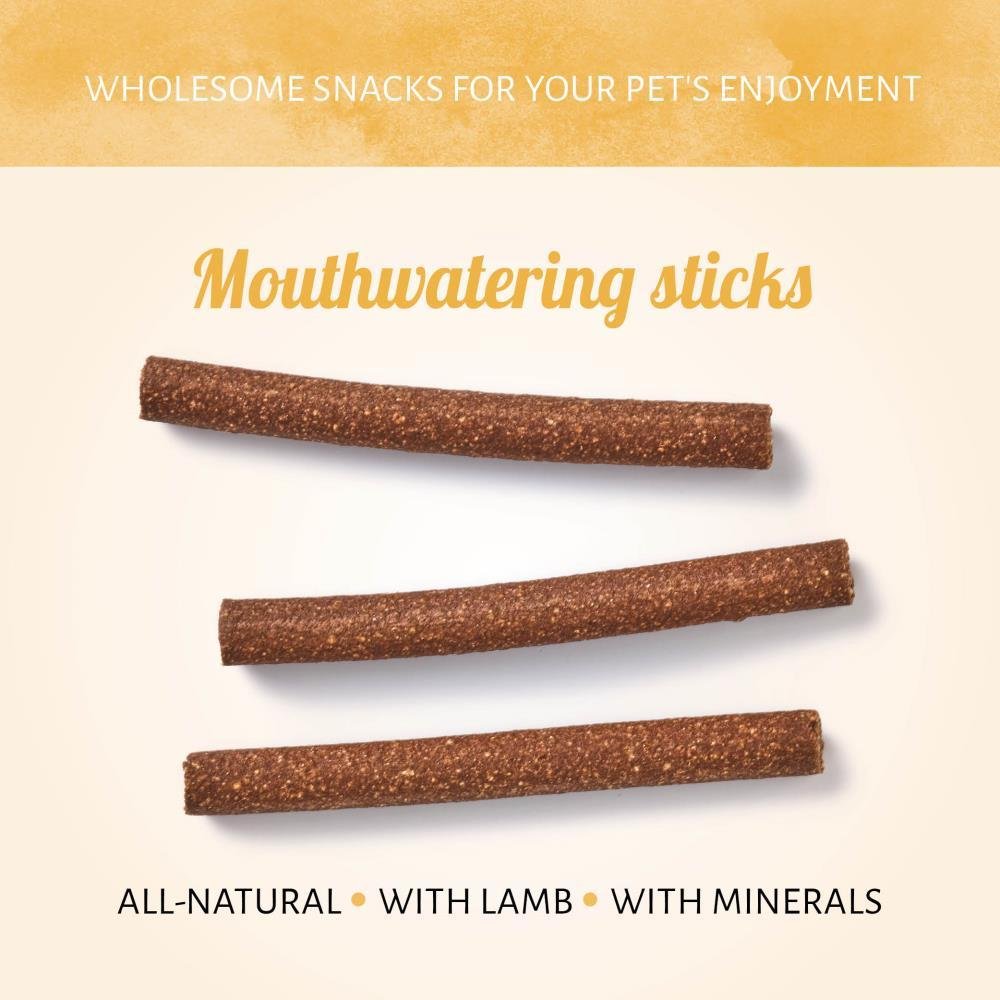 Take a break with Chicken Sticks Lamb/Rice. Your dog will love to chew on these mouthwatering sticks. Bursting with big flavour, these sticks have a short list of ingredients with lamb meat on top.