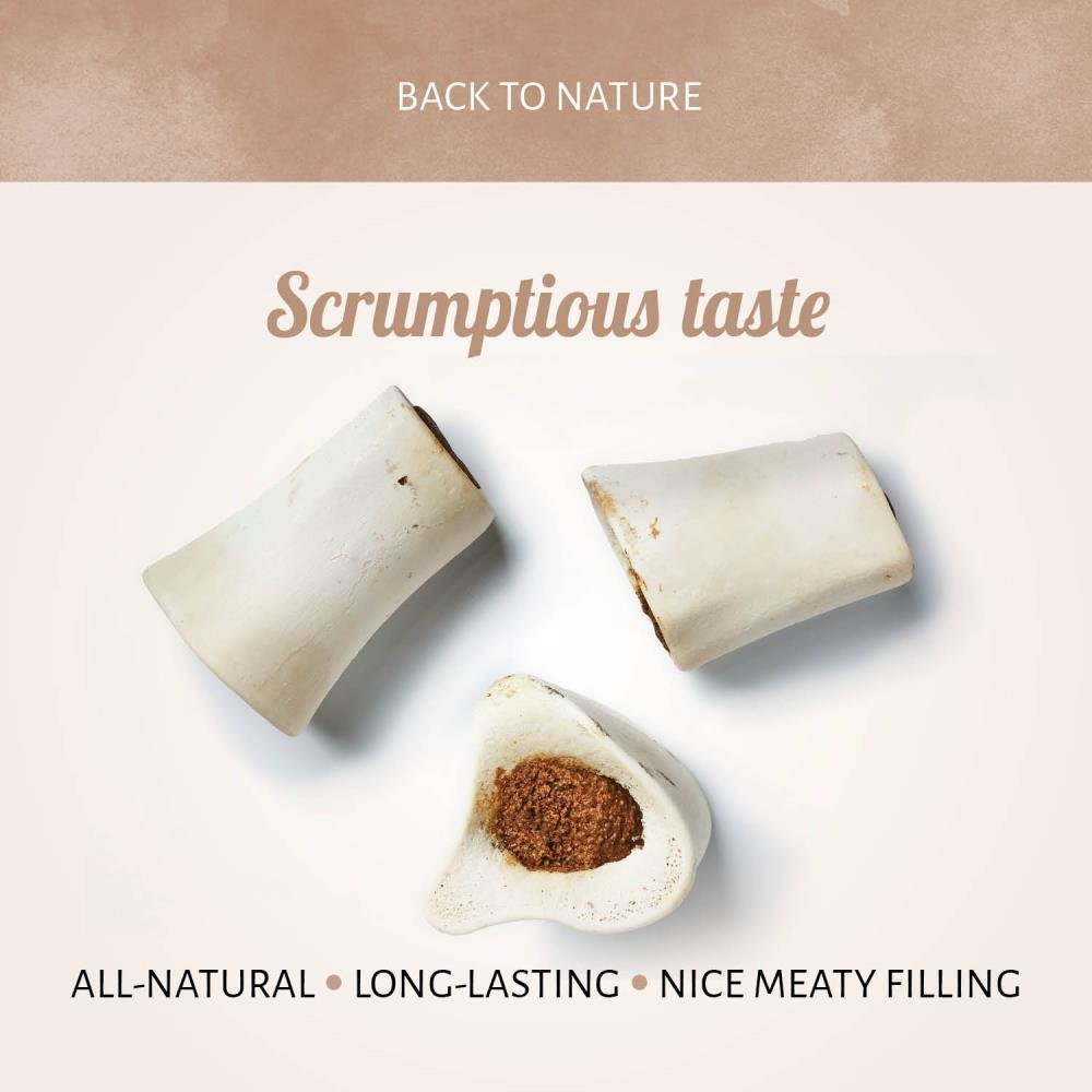 Filled bones are one of our most popular natural dog snacks. Our Marrow Bone White Lamb&Rice are tasty bones stuffed with a meaty mix recipe for a scrumptious taste your dog will love.
