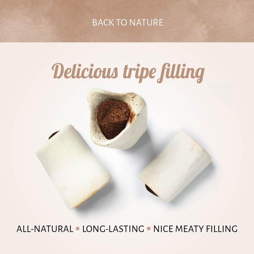Marrow Bone White Tripe is a highly appealing dog snack. The long-lasting bones provide a durable chew for aggressive chewers. The meaty marrow bones are filled with a delicious tripe filling in the centre.