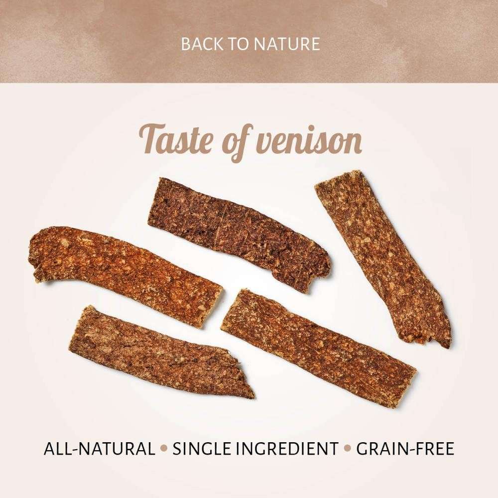 Meat Strips Game are grain-free limited ingredient snacks which are perfect for dogs with sensitivities. The snacks are gently dried to retain natural nutrients and maximize their palatability.