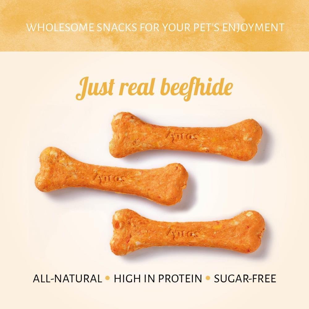 Give this Meaty Bone Chicken to your best friend as a savoury snack or as a tasty complement to his complete diet. These strong bones are made with real beef hide for the savoury flavour your dog will love.