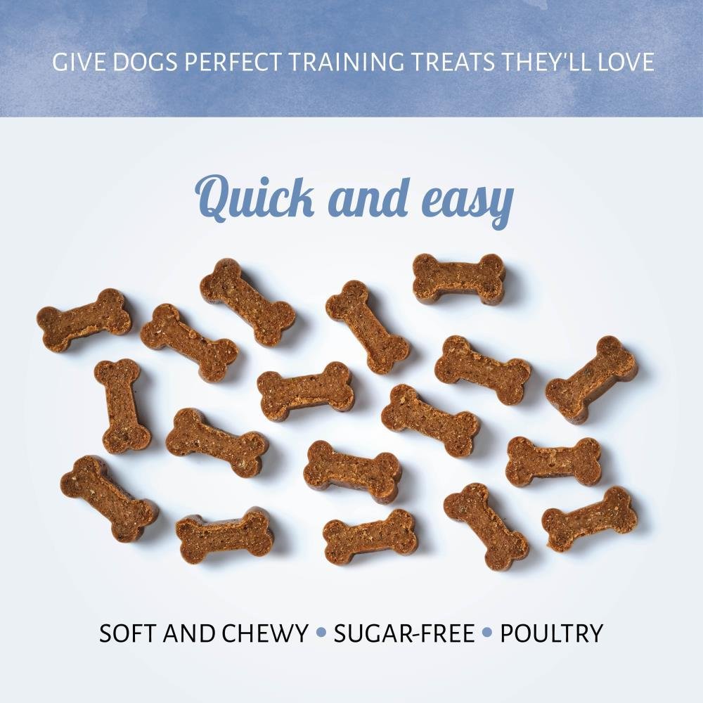 Make training more exciting for your dog with our Mini Bones Chicken dog treats. Made with real poultry as the first ingredient, they are just the right size for a training reward that is quick and easy to give.