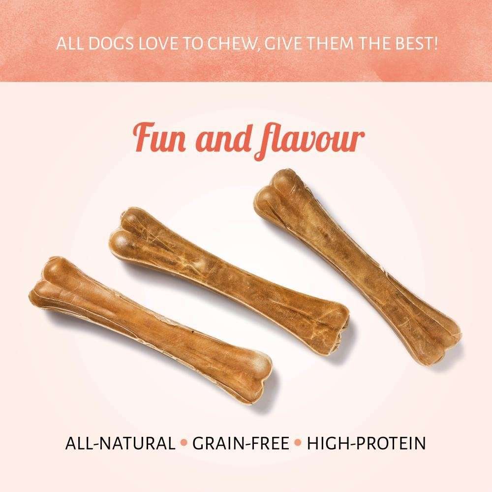 Make your canine's dream come true with Pressed Bone dog chews. Fun and flavour are rolled into every bone. Not only will your dog love the taste, but he will also love holding this big bone between his paws.