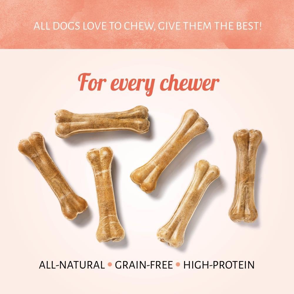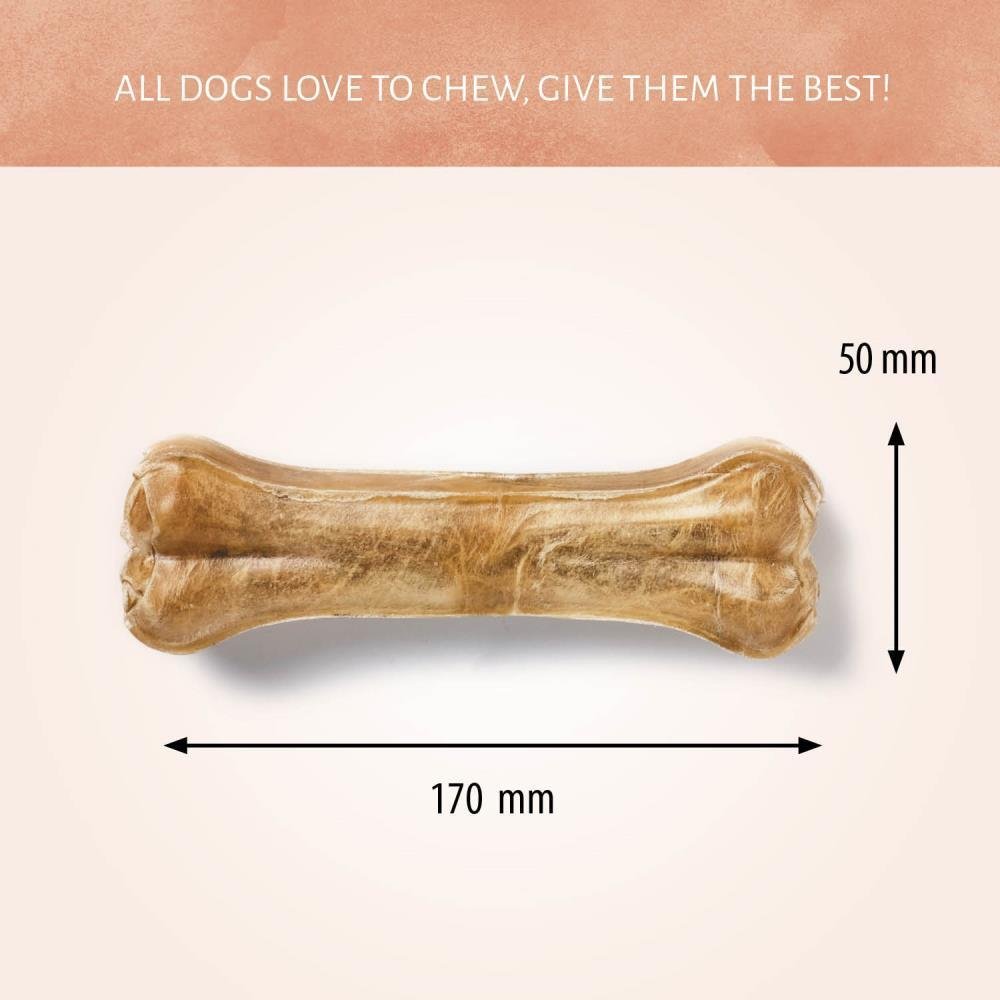 Whether you are choosing a dog chew for a tiny lapdog with a big bite or an adult dog that nibbles our Pressed Bone dog chews are suitable for every chewer. Delicious top-quality rawhide with dental benefits for your best friend.