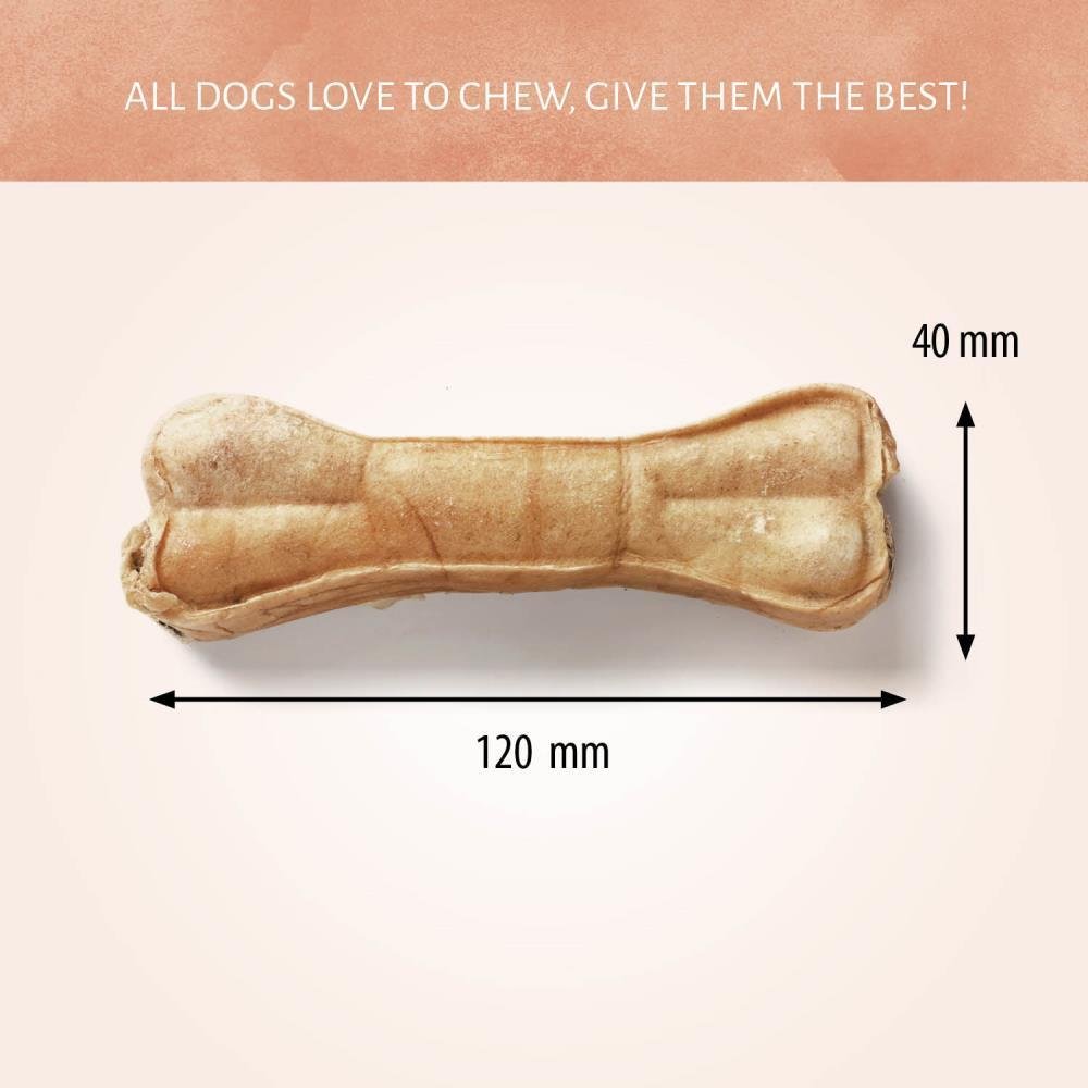 Pressed Bone Pizzle are made of delicious rawhide with a real pizzle filling. These high-protein chews help promote healthy chewing and are the perfect treating size for mid-sized dogs. Your dog will love the chew!