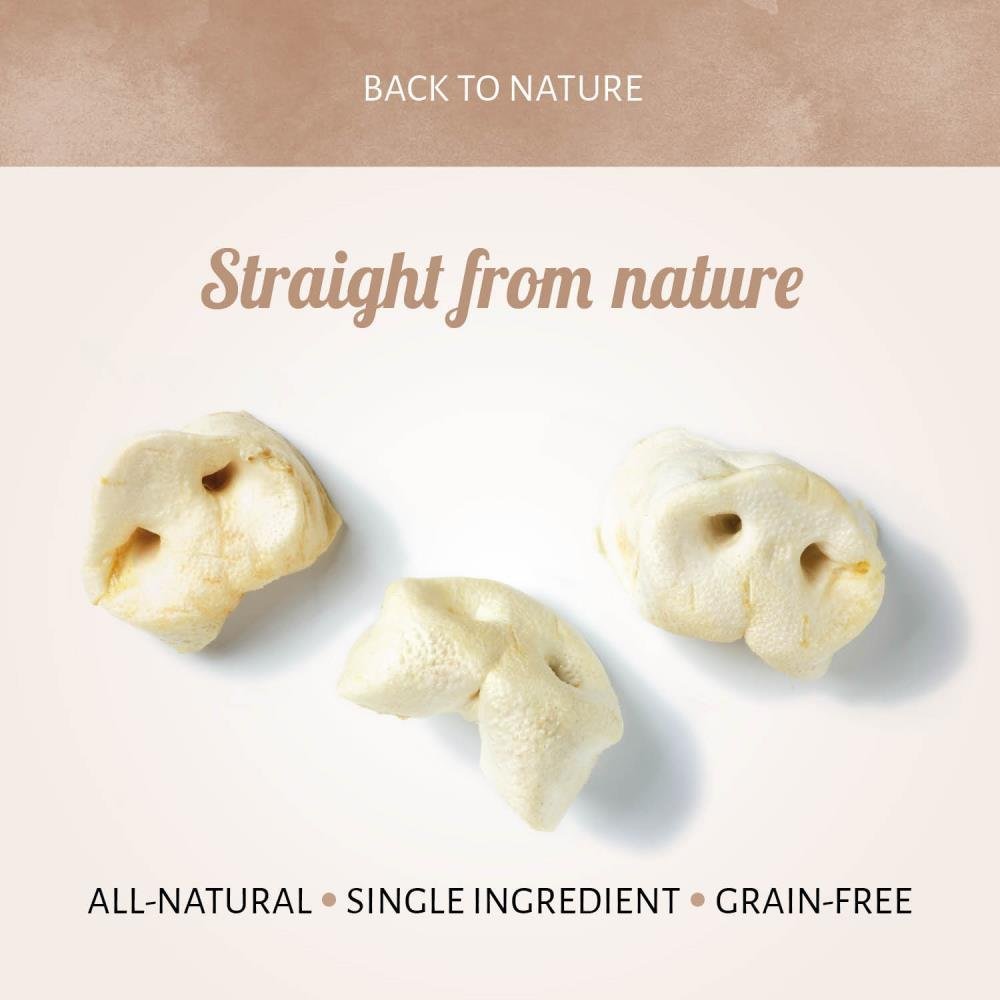 Spoil your dog with natural Puffed Pig Snouts. These all-natural snacks feature a rugged, chewy texture and tasty pork flavour. Made without just pig snouts alone, these snacks are made without any additives.
