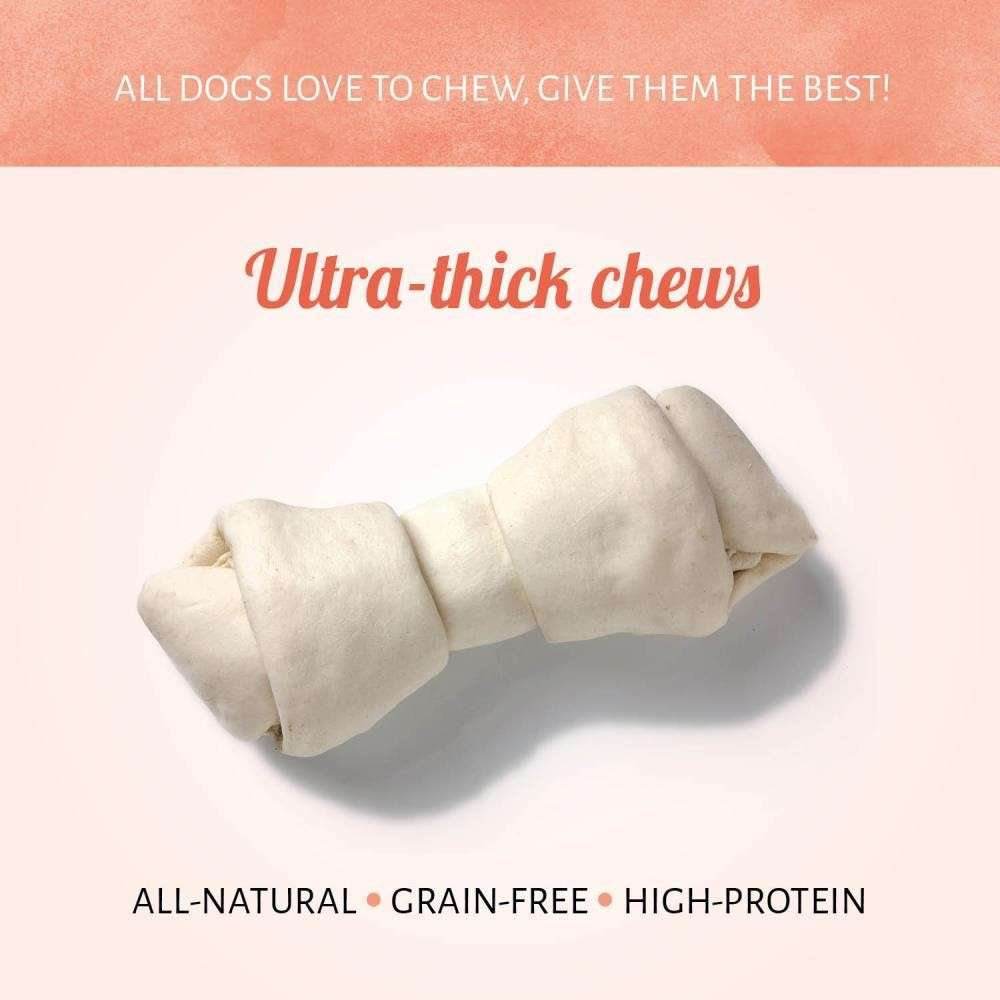 Give your furry buddy a real bone with Raw Hide White Knotted Bone. Your doggie friend is sure to love this regular rawhide bone. These ultra-thick chews offer hours of natural, tasty and chewy fun for your dog.