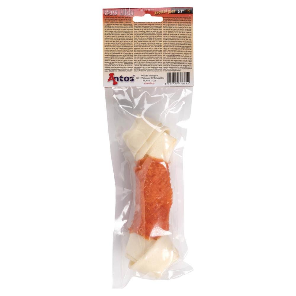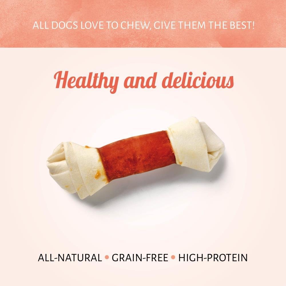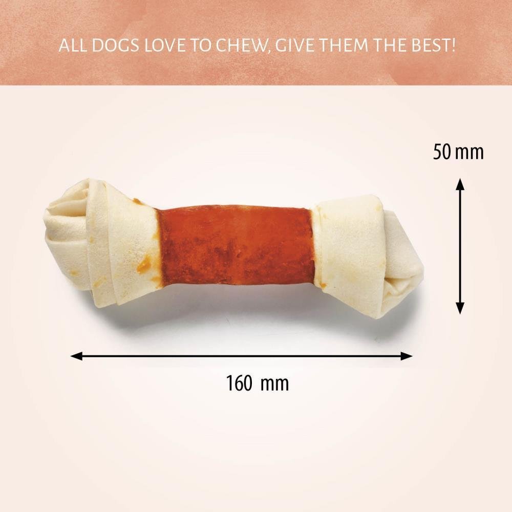 Add more fun to your dog's chewing experience with the duo comibination of rawhide and chicken in on chew. Our Raw Hide White + Chicken Knotted Bone are all-natural and tasty rewards.