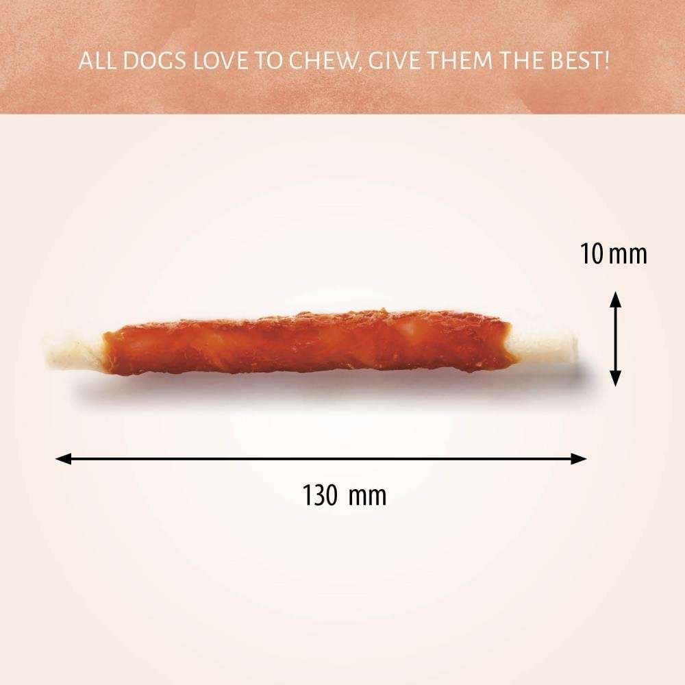 With a smell so good, you would think that Raw Hide White + Chicken Roll were for you. These naturally chicken chews are wrapped around a rawhide stick. Your canine’s senses will come to life for this populair treat!