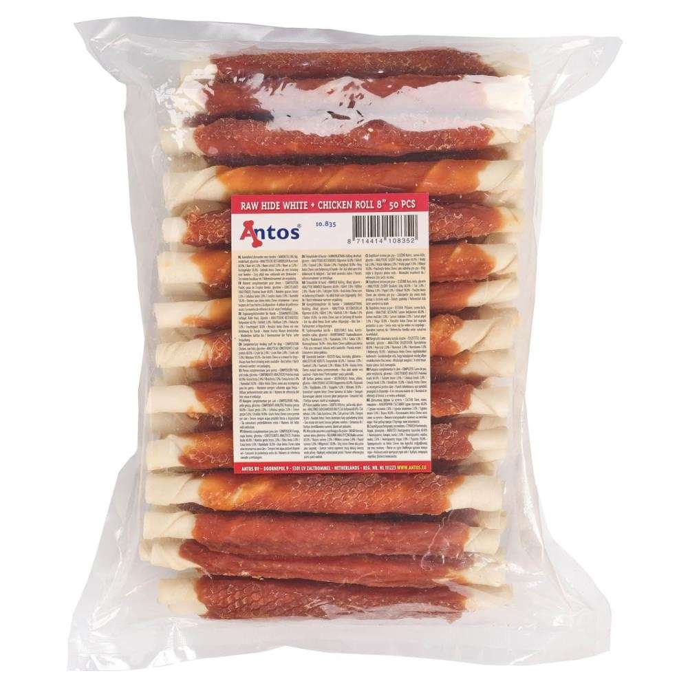 Raw Hide White + Chicken Roll 8" 50 pcs