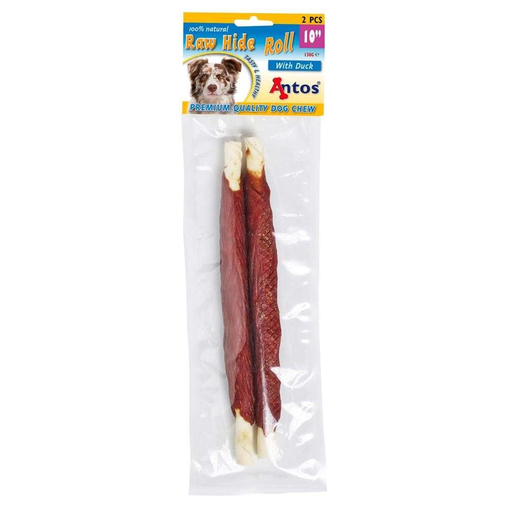 Raw Hide White + Duck Roll are made from 100% natural duck wrapped around a rawhide stick. Your dog will love chowing on these tasty treats and the chewy texture will also help clean your dog's teeth.