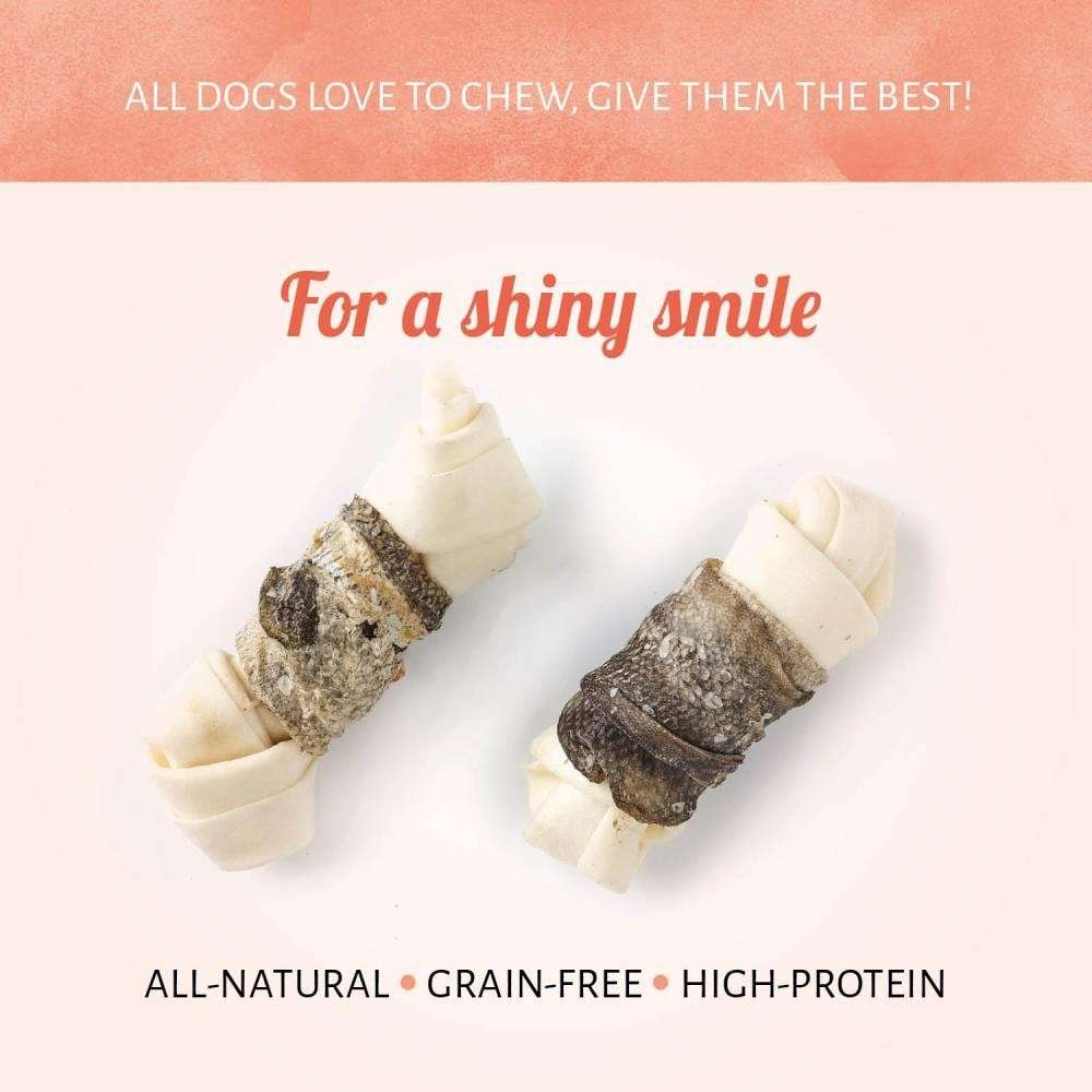 Raw Hide White + Fish Knotted Bone are the tastiest way to give your dog a shiny smile. The act of gnawing on the longer-lasting chew will help support your dog’s teeth and gums, because tip-top dental health is important.
