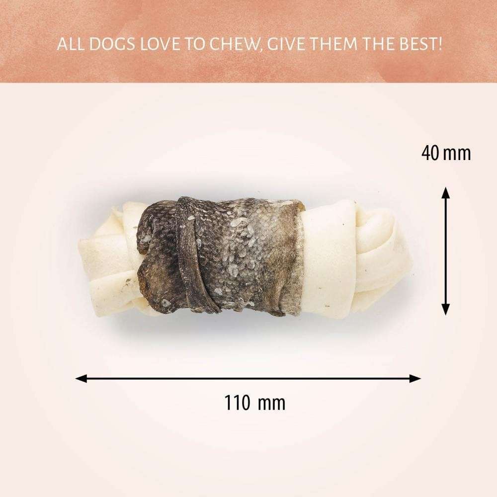 Raw Hide White + Fish Knotted Bone 4/5" 2 pcs