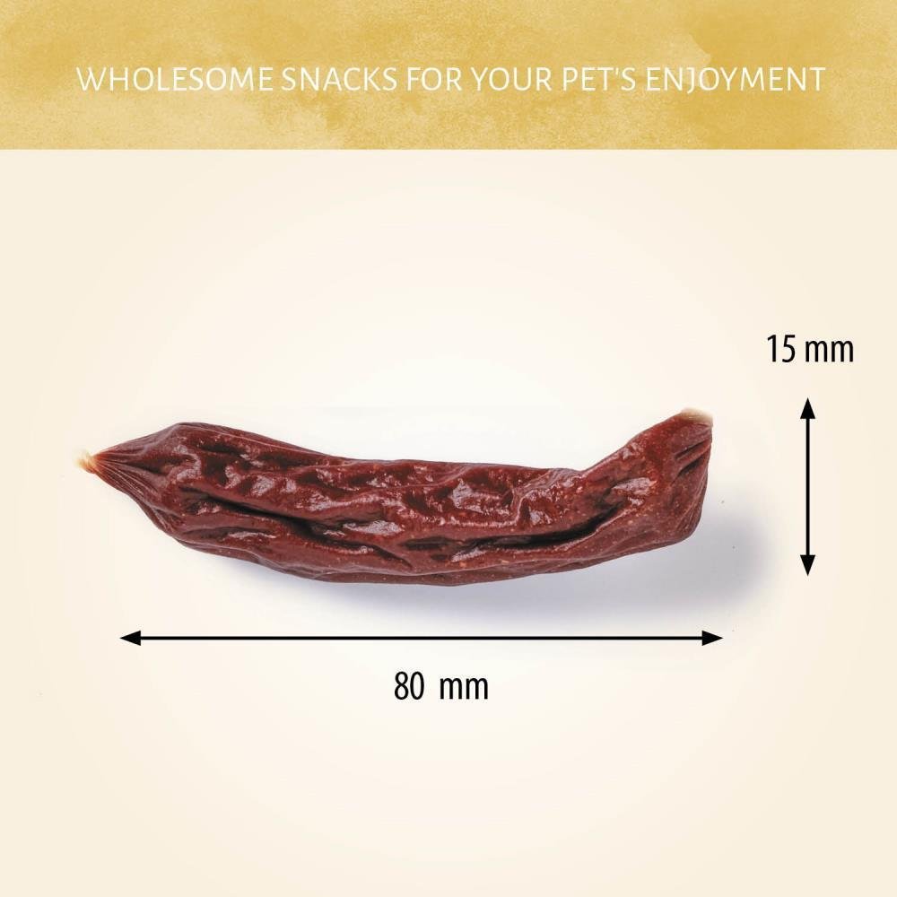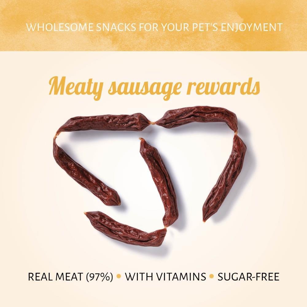 Sausages Beef with real beef first, offers your dog the nutrition he or she craves. The rewards are slow-cooked to deliver the real meaty taste and they are completely free of grains so sensitive dogs can enjoy them too.