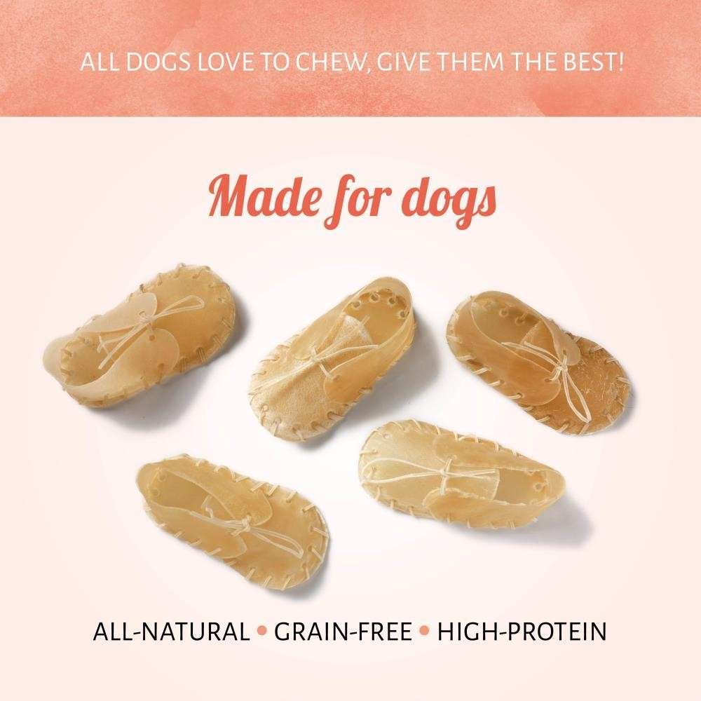 If your furry friend likes to chew on shoes you should give him Shoe dog chews. These delicious treats are ideal for active chewers and allow for longer more satisfying chew sessions. Start more exciting chewtime!